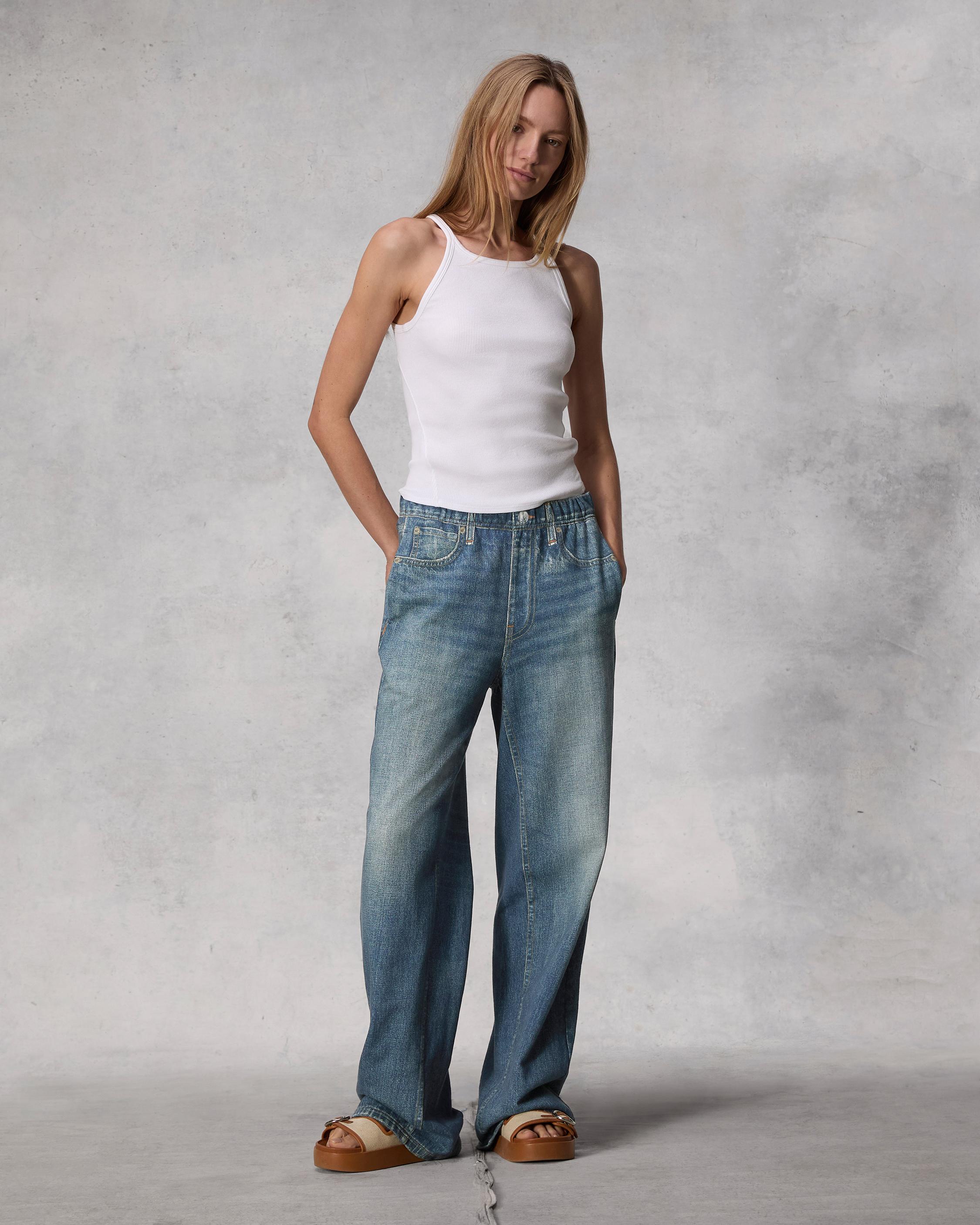 The Celest Wide-Leg. "The most comfortable jeans in the world. They look like denim but they feel softer than leggings." These are ultra-soft (of course), crafted with a loop-back cotton terry that's printed to look like your favorite high-rise, wide-leg denim jeans. Features side seam pockets, elastic at the waist, and printed pockets. Really does look like denim. Really feels nothing like it.