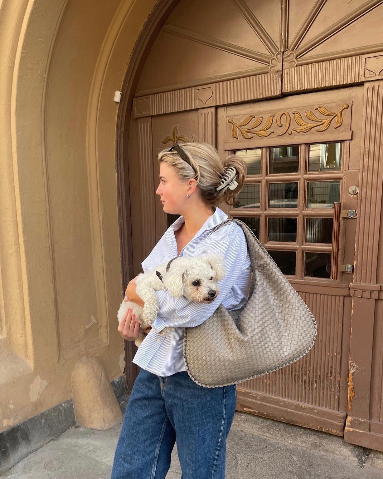 Your new GO-TO everyday bag. Our Musthave shoulder bag has a round shape and a woven/braided design. The bag has a large main compartment with zip closure, and two smaller compartments with zip inside the bag and a small open pocket. The must-have bag is very roomy, and can even fit a Macbook 13" inside.