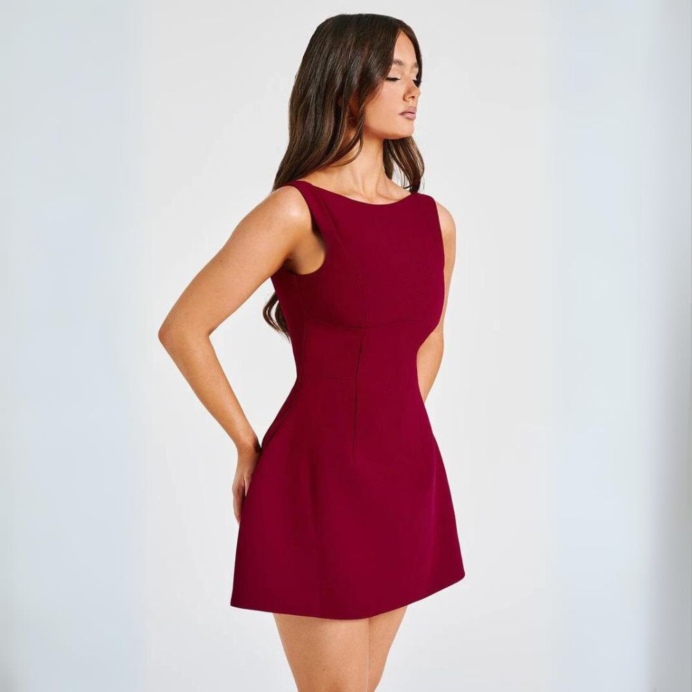 The ultimate mini, Louda is made in our premium crepe fabric with a flirty bubble shape skirt which is super voluminous. The high neck design is finished with seam details and a scoop back. Pair with sleek waves and tonal mule heels.