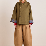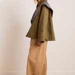 The Maddison Reversible Trench Coat is a cropped style with mock horn buttons, embroidery detail on the pocket and a detachable collar that can be worn as a headscarf. Cut from 100% organic cotton, the Jerry is fully reversible, providing you with endless styling options.